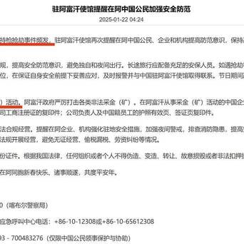 另外,22日怎样炒股配资,中国驻大使馆紧急发布了一则安全提醒,提示在阿中国人要保持高度警惕,谨防近期频发的持枪抢劫事件,其中还特意强调了“禁止从事非法采金(矿)活动”。这似乎表明,这是一起极端分子改行当“劫匪”的案子。